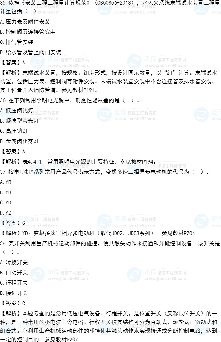2021年一級造價師《安裝計量》試題答案及解析31-40