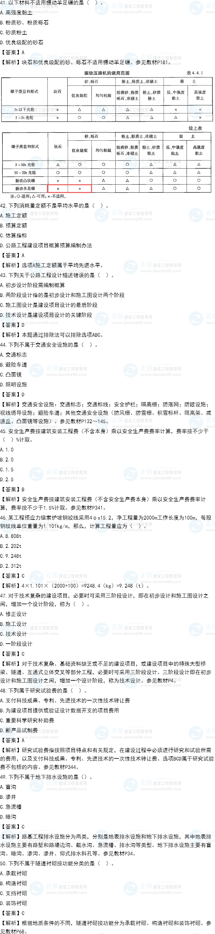 2021年一級造價師《交通計量》試題答案及解析41-50
