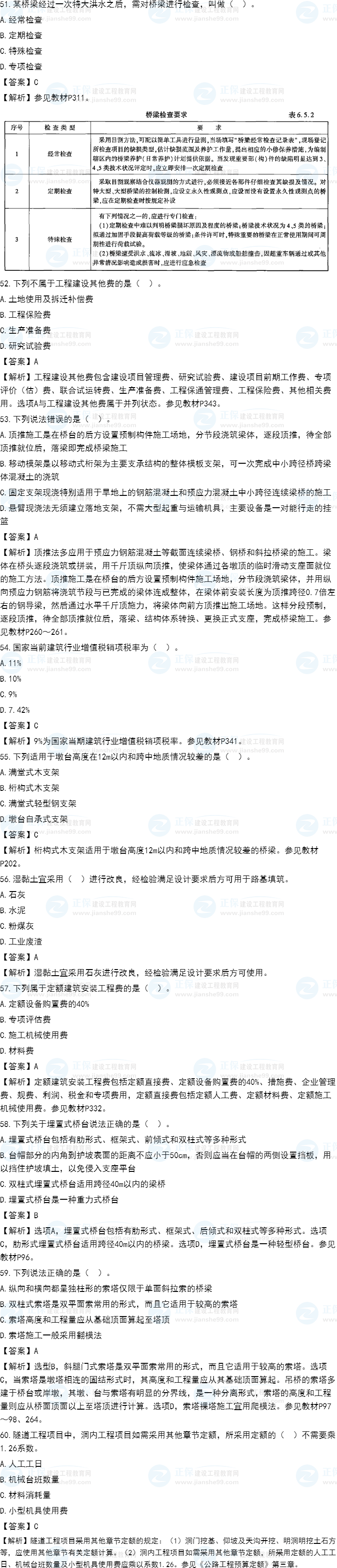 2021年一級造價師《交通計量》試題答案及解析51-60