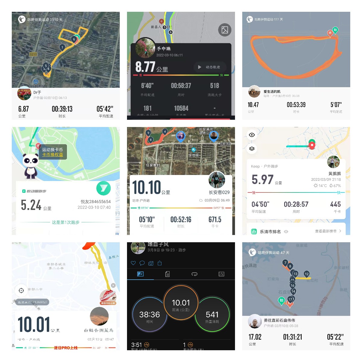 5公里、8公里、10公里的跑步里程,來自河南、浙江、江蘇、陜西的跑友們爭(zhēng)相亮相。