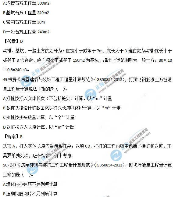 以上就是為大家分享的2019年一級造價師《技術(shù)與計量(土建)》試題及答案解析41-50,建設(shè)工程教育網(wǎng)將持續(xù)關(guān)注2020年一級造價師考試的相關(guān)信息。更多2020年一級造價師考試內(nèi)容,盡在建設(shè)工程教育網(wǎng)一級造價師欄目!