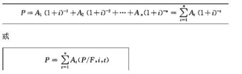 【解析】在工程實踐中,多次支付是最常見的支付形式。多次支付是指現(xiàn)金流量在多個時點發(fā)生,而不是集中在某一時點上,如圖所示。如果用At表示第t期末發(fā)生的現(xiàn)金流量(可正可負),用逐個折現(xiàn)的方法,可將多次現(xiàn)金流量換算成現(xiàn)值并求其代數(shù)和,即:
