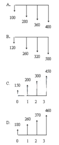 在資金時(shí)間價(jià)值的作用下,下列現(xiàn)金流量圖(單位:萬(wàn)元)中,有可能與現(xiàn)