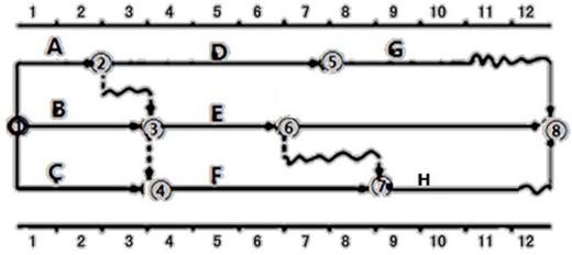 某工程雙代號(hào)時(shí)標(biāo)網(wǎng)絡(luò)計(jì)劃如下圖所示,其中工作A的總時(shí)差為(?。┲堋?/p>