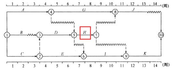 答案解析:本題考查的是雙代號時標(biāo)網(wǎng)絡(luò)計劃。選項B,工作箭線中波形線的水平投影長度表示工作與其緊后工作之間的時間間隔。選項D,工作箭線中不存在波形線,但該工作的總時差和自由時差不一定為零(如下圖的工作H)。選項E,若工作箭線不存在波形線但是其緊接的虛箭線中有波形線時,則該工作與其緊后工作之間仍有時間間隔。參見教材P132。