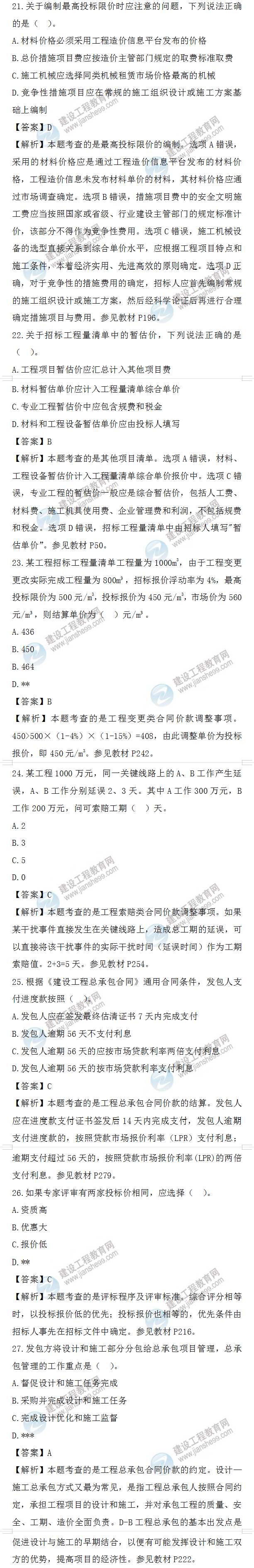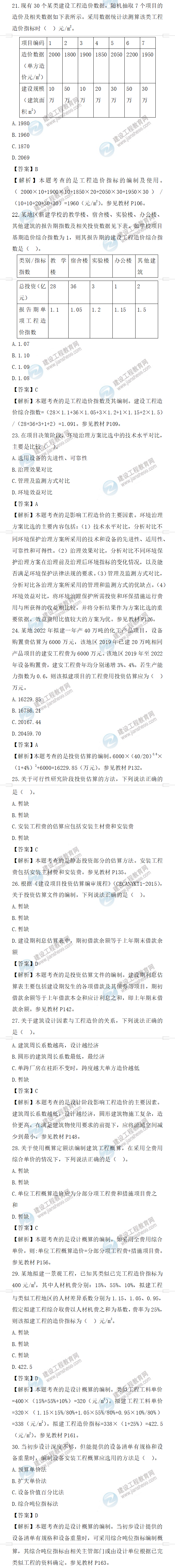 2022年一級造價(jià)師工程計(jì)價(jià)試題答案及解析21-30題