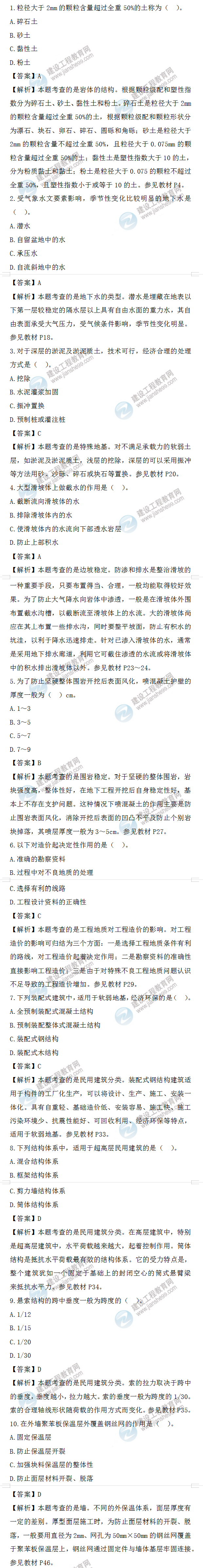 2022年一級(jí)造價(jià)師土建計(jì)量試題答案及解析1-10題
