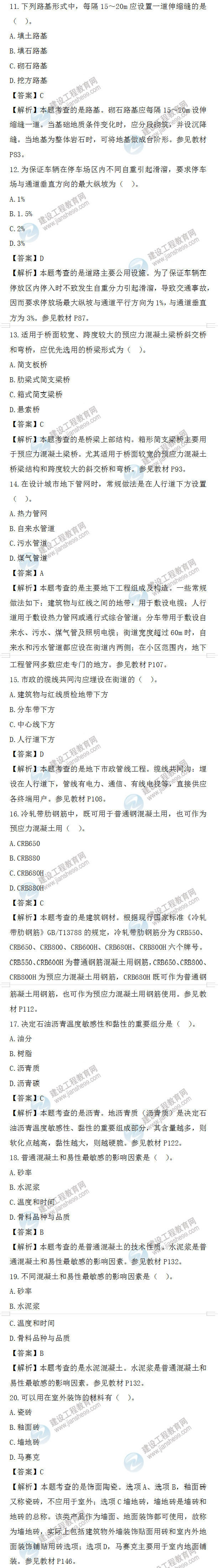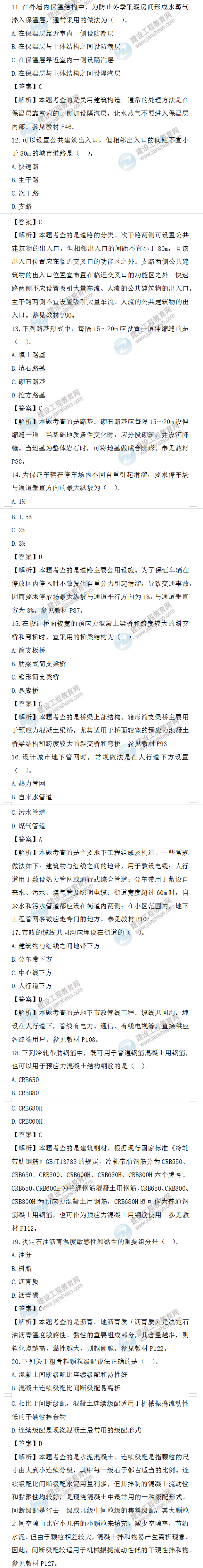 2022年一級造價(jià)師土建計(jì)量試題答案及解析11-20題
