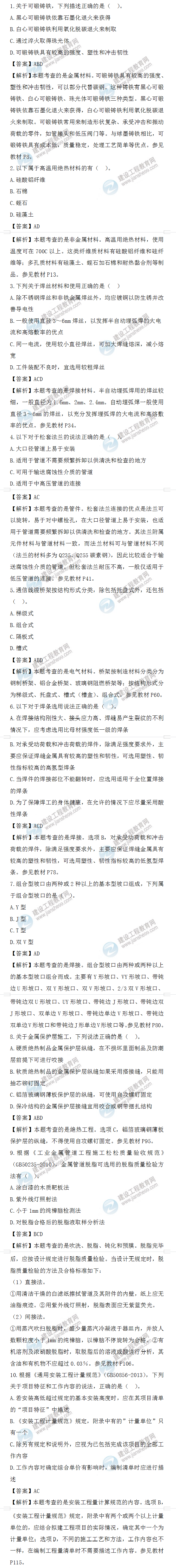2022年一級造價師安裝計量試題答案及解析41-50題