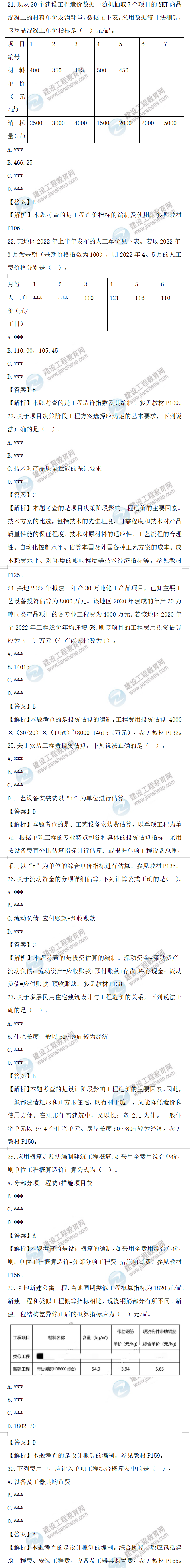 2022年一級造價師工程計價補考試題答案及解析21-30題