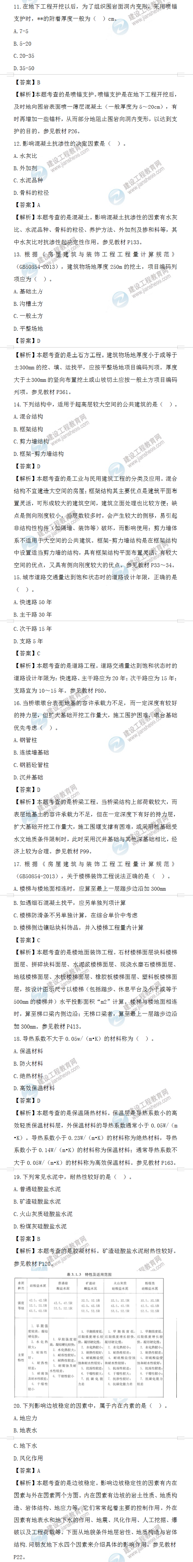 2022年一級造價師土建計量補考試題答案及解析11-20題
