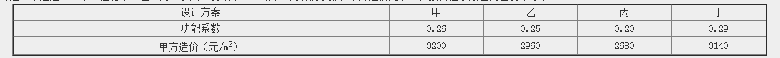 【試題·單選題35】某工程有甲、乙、丙、丁四個設計方案,各方案的功能系數(shù)和單方造價見下表,按價值系數(shù)應優(yōu)選設計方案( )。
