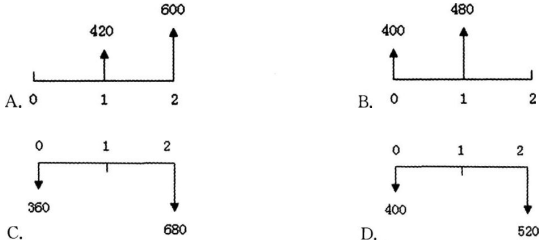 25.B【解析】首先根據(jù)l000萬元為現(xiàn)金流入判定C、D錯(cuò)誤;選項(xiàng)A,420(1+i)+600肯定大于1000萬元,選項(xiàng)A錯(cuò)誤。