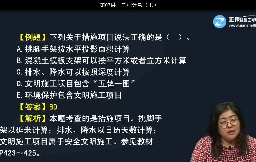 【答案解析】本題考查的是措施項(xiàng)目。選項(xiàng)A錯(cuò)誤,外腳手架、里腳手架、整體提升架、外裝飾吊籃,工程量按所服務(wù)対象的垂直投影面積計(jì)算。