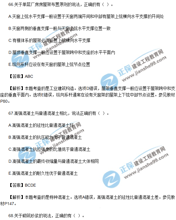 2017年造價(jià)工程師技術(shù)與計(jì)量(土建)試題及答案多選1-10