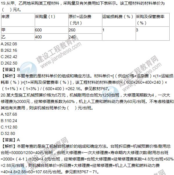 2016造價(jià)工程師《建設(shè)工程計(jì)價(jià)》試題及答案(11-20題)
