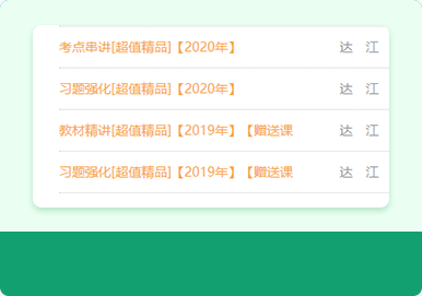講課重點(diǎn)、難點(diǎn)突出,讓考生輕松把握考點(diǎn),思路清晰,循序漸進(jìn),由易及難,復(fù)雜問題簡(jiǎn)單化,抽象復(fù)雜的公式生活化、案例化,學(xué)員快速理解,達(dá)到了事半功倍的學(xué)習(xí)效果。