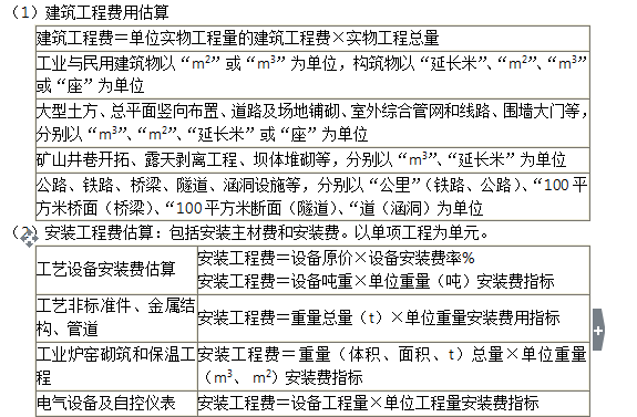 (1)建筑工程費用估算