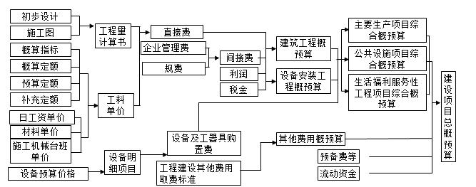 ?。?)單項(xiàng)工程概預(yù)算造價(jià)=∑單位工程概預(yù)算造價(jià)+設(shè)備、工器具購(gòu)置費(fèi) (2.1.9)