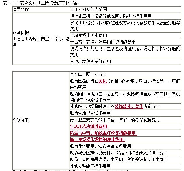 包括:環(huán)境保護費、文明施工費、安全施工費、臨時設(shè)施費(施工單位的,包括搭設(shè)、維修、拆除、清理費或攤銷費)。