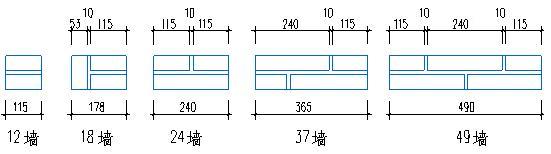 磚墻墻段尺寸:是指窗間墻、轉(zhuǎn)角墻等部位墻體的長度。墻段由磚塊和灰縫組成,普通黏土磚最小單位為115mm磚寬加上10mm灰縫,共計(jì)125mm,并以此為磚的組合模數(shù)。按此磚模數(shù)的墻段尺寸有(單位mm):240、370、490、620、740、870、990、1120、1240等數(shù)列。