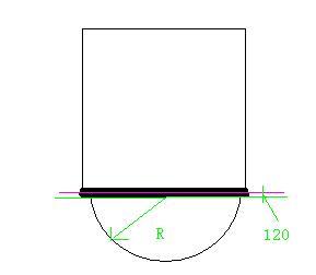 請(qǐng)您下圖,這里是圖上標(biāo)的有些看不太清楚的地方,其實(shí)半徑的標(biāo)注的時(shí)候,它是從圖中綠線的位置也就是墻體的外側(cè)開始標(biāo)準(zhǔn)的,并且在圖中還標(biāo)出它與軸線之間的距離120。