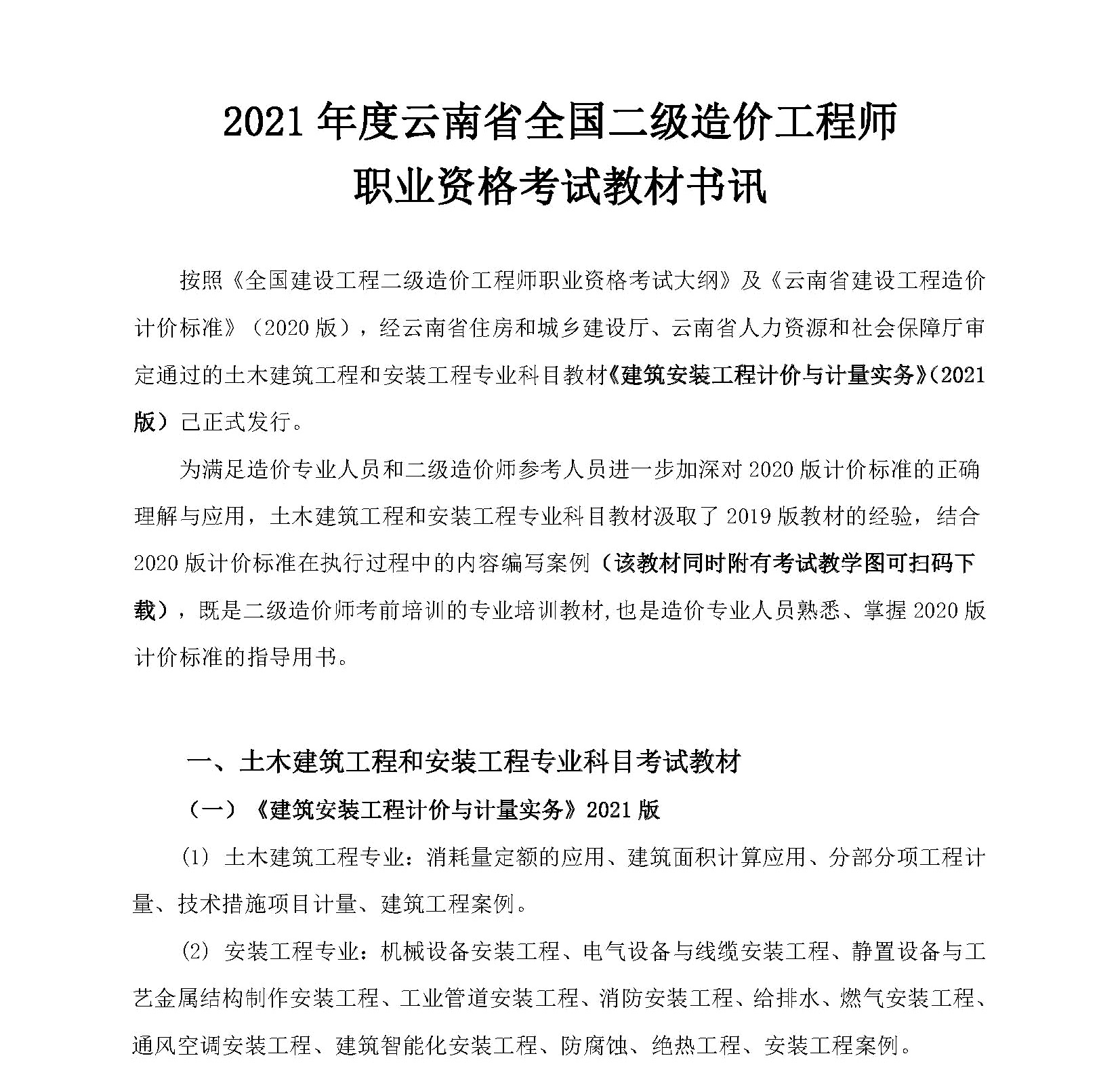 2021年云南省二級造價工程師考試教材書訊