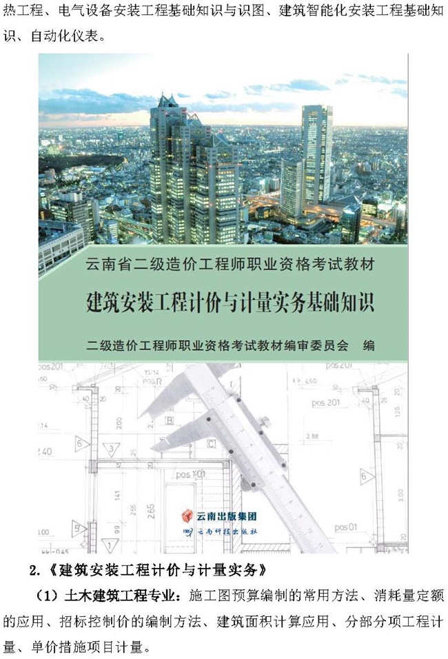 《建設工程計量與計價實務(土木建筑工程)》、《建設工程計量與計價實務(安裝工程)》2個科目可參考使用中國建筑工業(yè)出版社出版的重慶地區(qū)教材《建設工程計量與計價實務(土木建筑工程)》和《建設工程計量與計價實務(安裝工程)》,教材相關事宜可咨詢023-61968133、61968122。