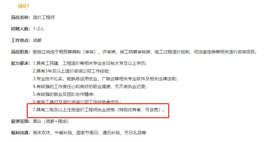 又有公司招聘造價(jià)工程師,有二級造價(jià)證書就可以應(yīng)聘!