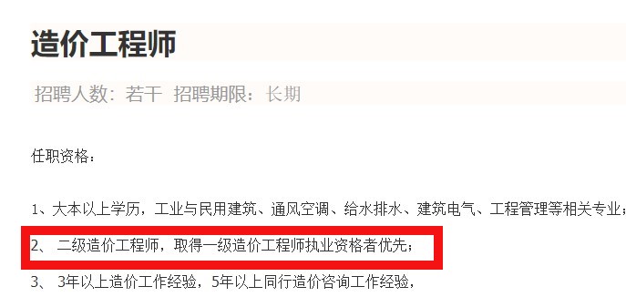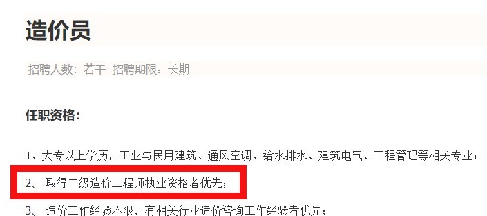 取得二級(jí)造價(jià)工程師執(zhí)業(yè)資格者優(yōu)先!