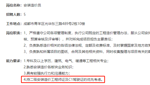 近日,四川的工程咨詢公司就接連發(fā)布了招聘通知,不僅說明要二級造價師,要求持有二造證書,其福利待遇也很高哦~
