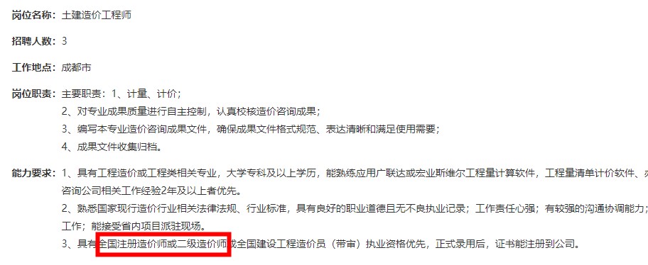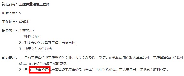 目前很多大型公司招聘工程師, 都表示有二造證書的優(yōu)先!廢話不多說,直接上證據(jù)。