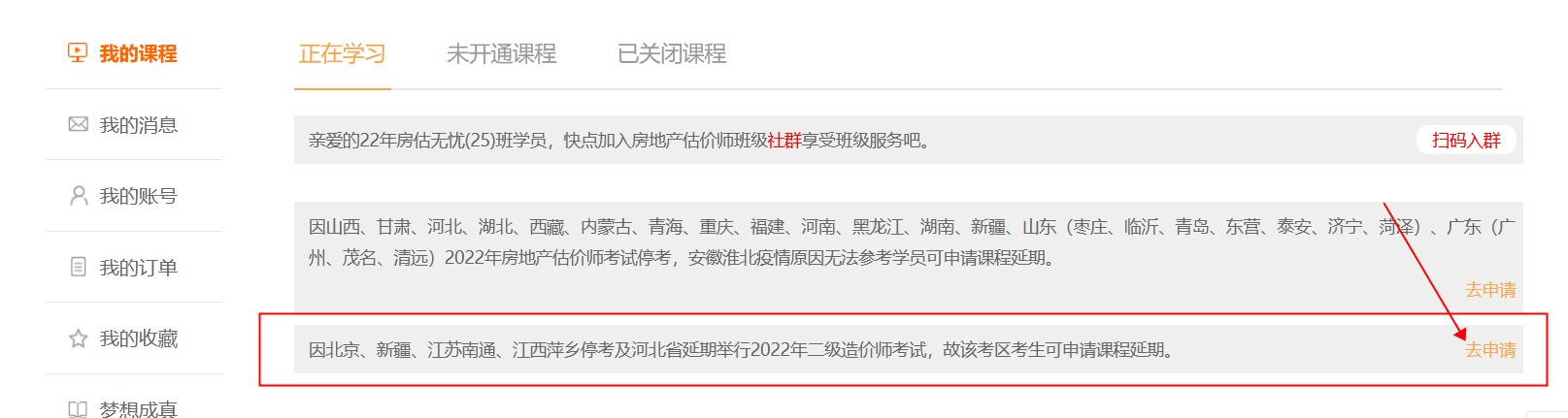 3.延期說明:因課程有效期為365天,本次申請(qǐng)將為??紝W(xué)員的22年課程更換至2023年對(duì)應(yīng)班型課程,統(tǒng)一換課時(shí)間為2023年1月5日。