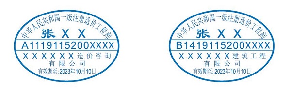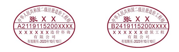 注意:由于建設部從2021年7月1日起取消造價資質,在沒有新的管理規(guī)定出臺之前,執(zhí)業(yè)印章按原規(guī)定執(zhí)行(即原先擁有造價資質的企業(yè)人員,執(zhí)業(yè)印章號碼前加前綴A,沒有造價資質企業(yè)人員,執(zhí)業(yè)印章號碼前加前綴B)。