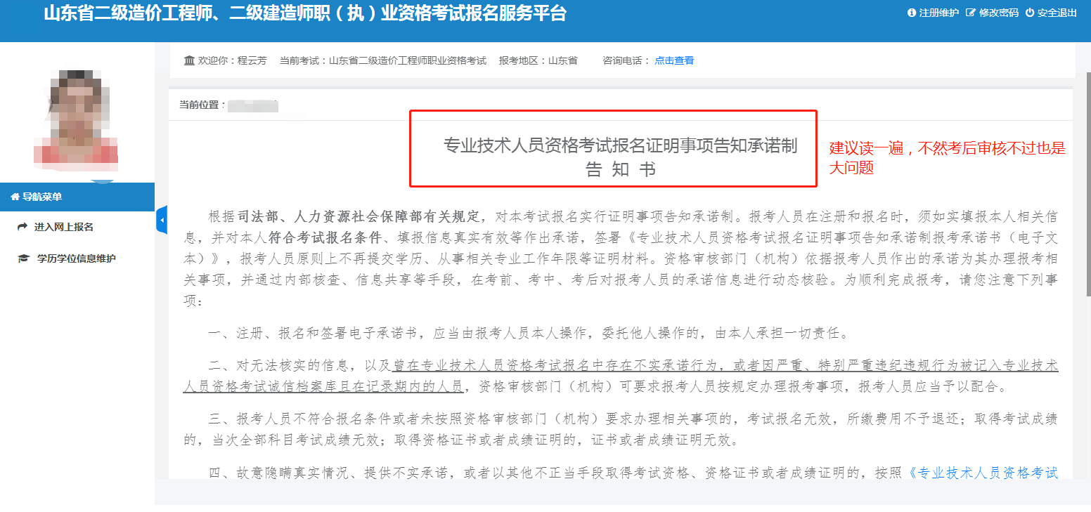 4.閱讀考試公告和報名承諾,一定要注意報名承諾制告知書,考前考后審核,一旦出了問題都是你自己負(fù)責(zé)。