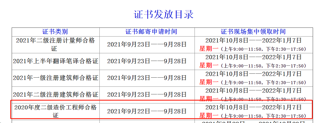 四川自貢2020年二級(jí)造價(jià)師證書(shū)辦理及領(lǐng)取通知