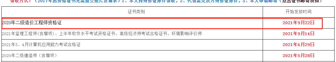 四川綿陽2020年二級造價師證書辦理及領取通知