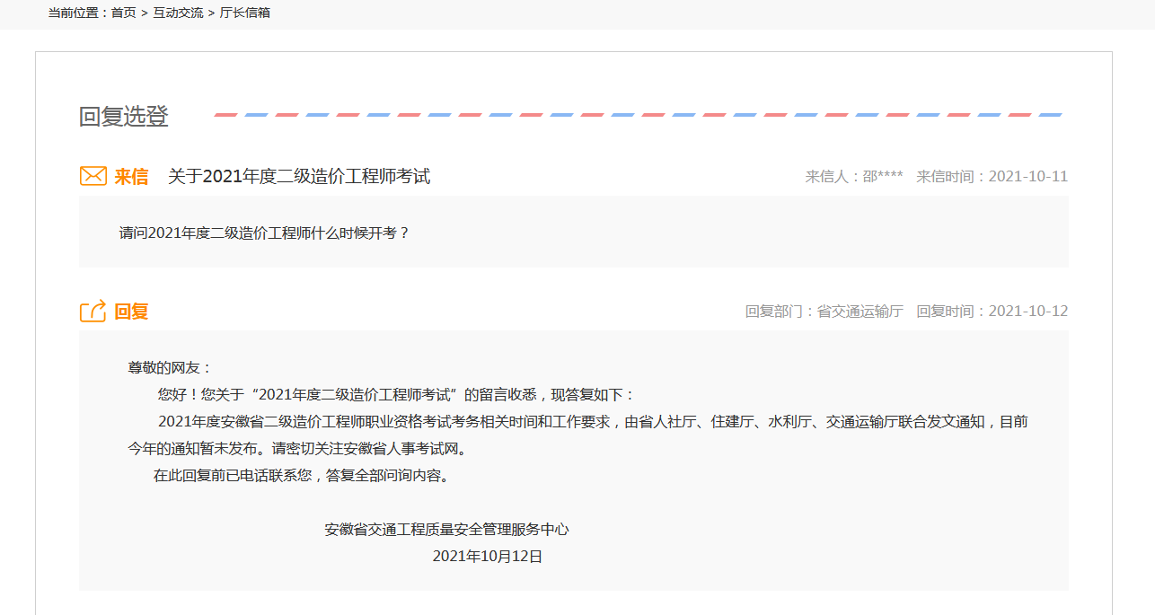安徽2021年二級造價師考試什么時候舉行