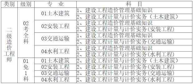 二級造價工程師職業(yè)資格考試代碼及名稱表