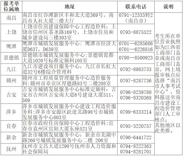 江西省二級造價工程師土建、安裝專業(yè)報考資格送審地址及聯(lián)系電話表