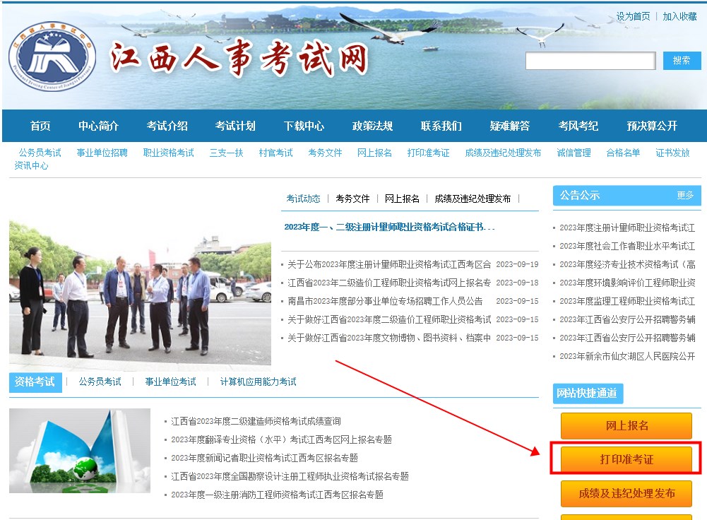 江西2023年二級造價工程師考試準(zhǔn)考證打印入口:江西人事考試網(wǎng)