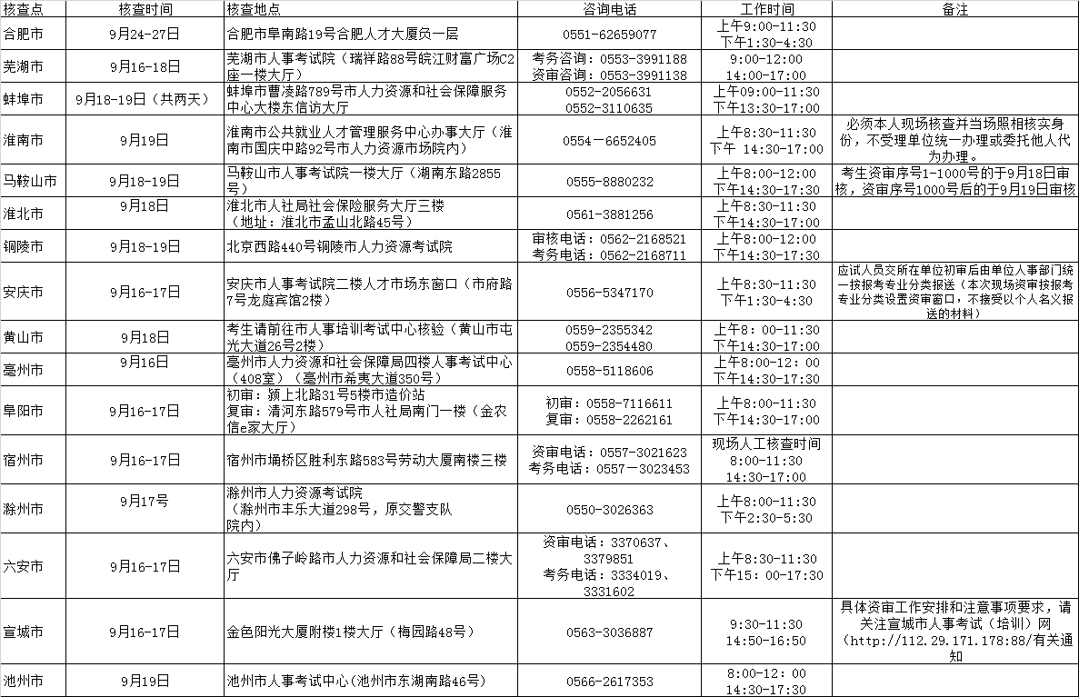 2019年度二級(jí)造價(jià)工程師資格考試安徽省各地市現(xiàn)場(chǎng)人工核查具體安排