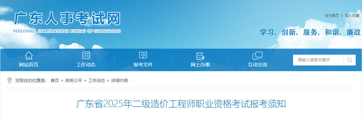 廣東人事考試網(wǎng)發(fā)布廣東省2025年二級造價工程師職業(yè)資格考試報考須知,詳情如下:
