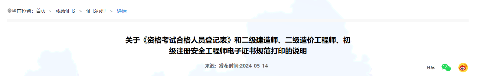 關(guān)于《資格考試合格人員登記表》和二建、二造、初級注安電子證書規(guī)范打印的說明