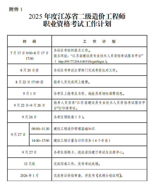 1.2025 年度江蘇省二級(jí)造價(jià)工程師職業(yè)資格考試工作計(jì)劃