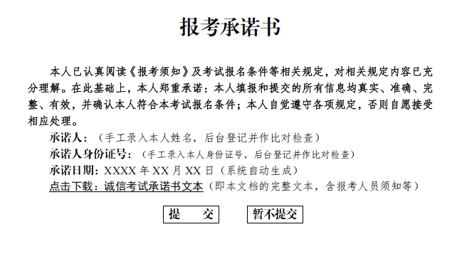 告知承諾制。根據(jù)《人力資源社會(huì)保障部辦公廳關(guān)于印發(fā)〈人力資源社會(huì)保障系統(tǒng)開展證明事項(xiàng)告知承諾制試點(diǎn)工作實(shí)施方案〉的通知》(人社廳發(fā)〔2019〕71 號(hào))和《人力資源和社會(huì)保障部人事考試中心關(guān)于印發(fā)〈專業(yè)技術(shù)人員資格考試報(bào)名證明事項(xiàng)告知承諾制試點(diǎn)工作實(shí)施方案〉的通知》(人考中心函〔2019〕26 號(hào))要求,本項(xiàng)考試報(bào)名實(shí)施告知承諾制。報(bào)考人員在報(bào)名時(shí)應(yīng)承諾符合報(bào)考條件且報(bào)考信息真實(shí)、準(zhǔn)確、完整、有效。