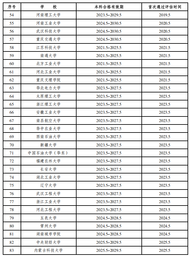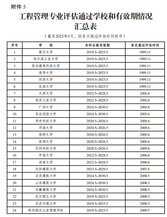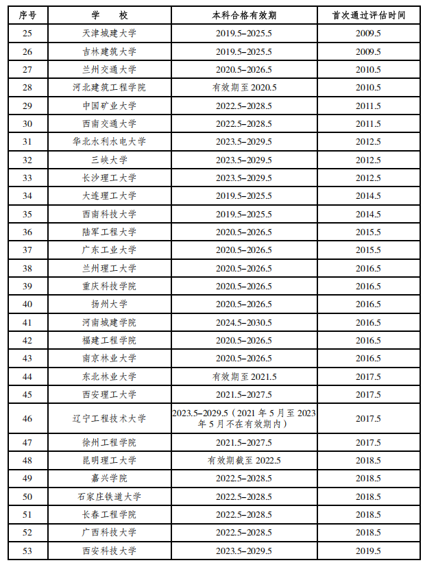 工程管理專業(yè)評(píng)估通過學(xué)校和有效期情況匯總表