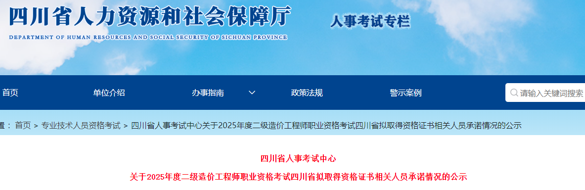 四川省人事考試中心關(guān)于2025年度二級造價(jià)工程師職業(yè)資格考試四川省擬取得資格證書相關(guān)人員承諾情況的公示