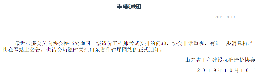 山東2019年二級造價(jià)工程師考試最新通知