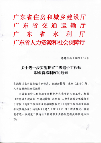 廣東印發(fā)《關(guān)于進一步實施我省二級造價工程師職業(yè)資格制度的通知》